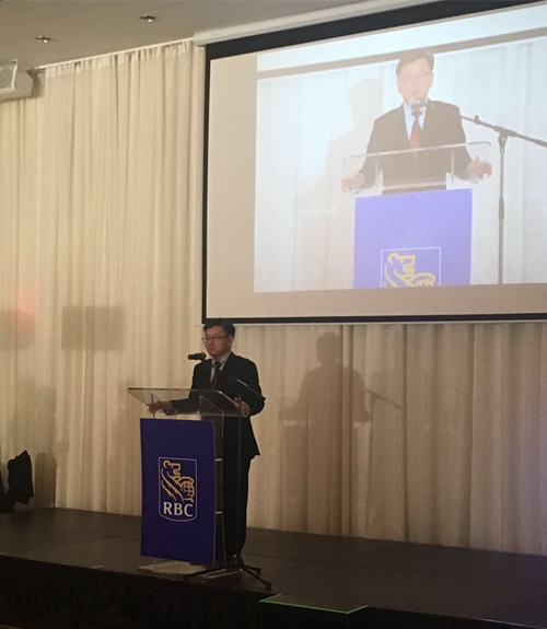 Tory女士、Thibodeau总裁和Deros女士先后发表致辞,他们用中文、法文和英文向与会者献上鸡年的美好祝福,盛赞加中友好关系和皇家银行涉华业务的快速发展,以及包括RBC华裔雇员在内的蒙特利尔华人社区对当地经济建设做出的杰出贡献。